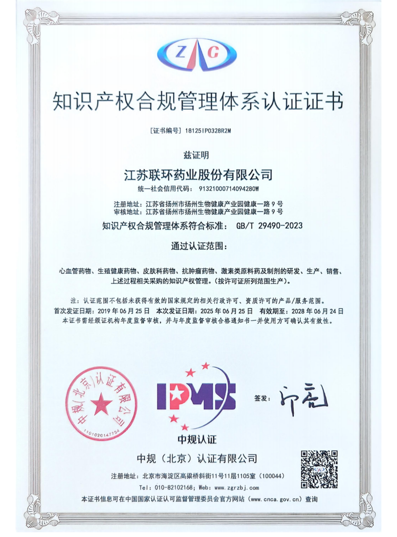 药物研究院围绕公司现有产品管线创新,重点锁定现有生产品种的更新换代开展新产品开发,并根据现有适应症开展同类品种的开发,拓展产品管线。同时,聚智聚力,与国内多个知名研发机构开展创新药立项调研,共同合作开发。重点在心血管、抗组胺、泌尿生殖系统、抗菌药、高端制剂等医药领域进行产业链布局。近年来已启动研发创新药10项,在研仿制药、一致性评价、工艺变更研发品种60多项。同时,公司高度重视知识产权保护工作,通过知识产权局认证,获得“国家知识产权优势企业”授牌。知识产权体系于2019年通过认证,获得“知识产权管理体系认证证书。目前公司已申请国内外发明专利70多件,授权专利25件。